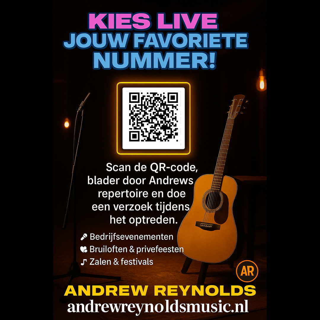 Andrew Reynolds is een singer-songwriter uit Drogheda, woonachtig in Nederland. Hij speelt Iers getinte, akoestische favorieten van de jaren 50 tot nu—ideaal voor cafés, bruiloften en verjaardagen van alle leeftijden. Verzoekjes via QR, compacte set-up, volumevriendelijk.